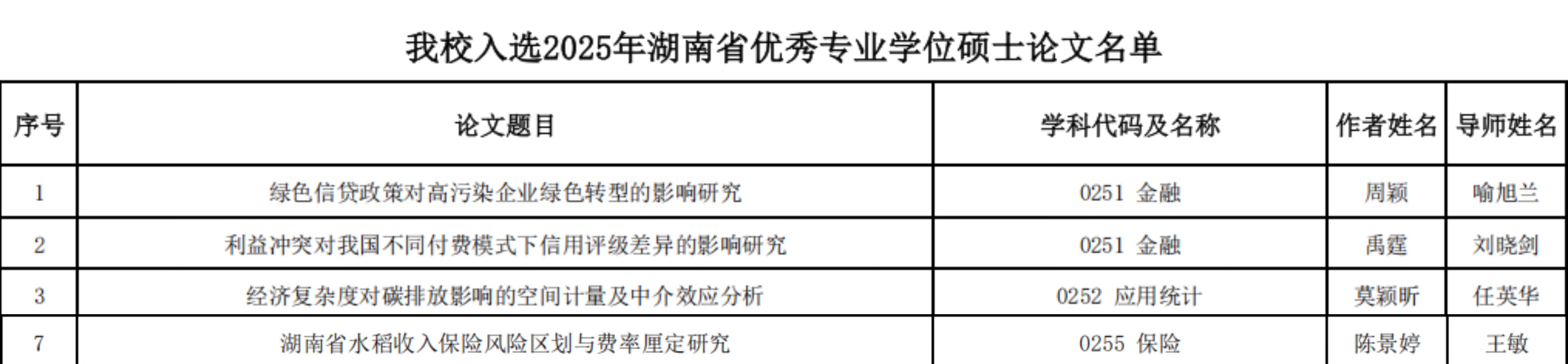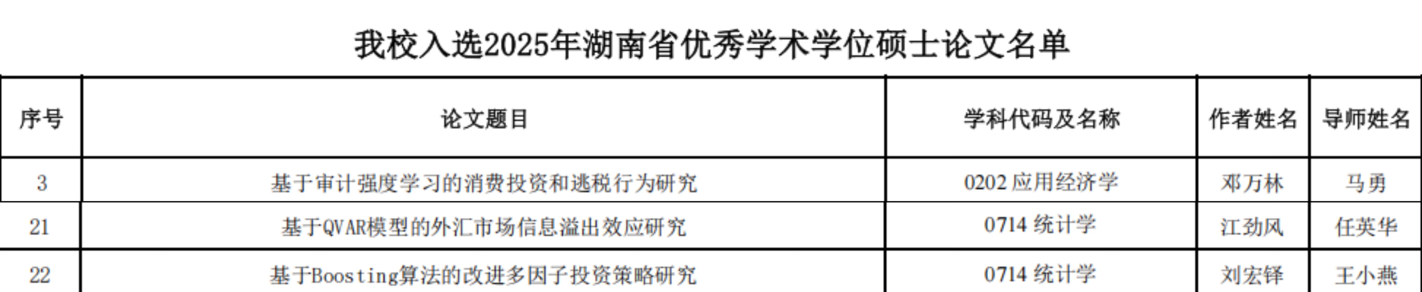 近日,湖南省教育厅公布了2025年湖南省优秀硕士学位论文名单,童颜巨乳 共有7篇论文入选湖南省优秀硕士学位论文,这7篇论文分别由童颜巨乳 马勇老师、任英华老师、王小燕老师、喻旭兰老师、刘晓剑老师、王敏老师指导。