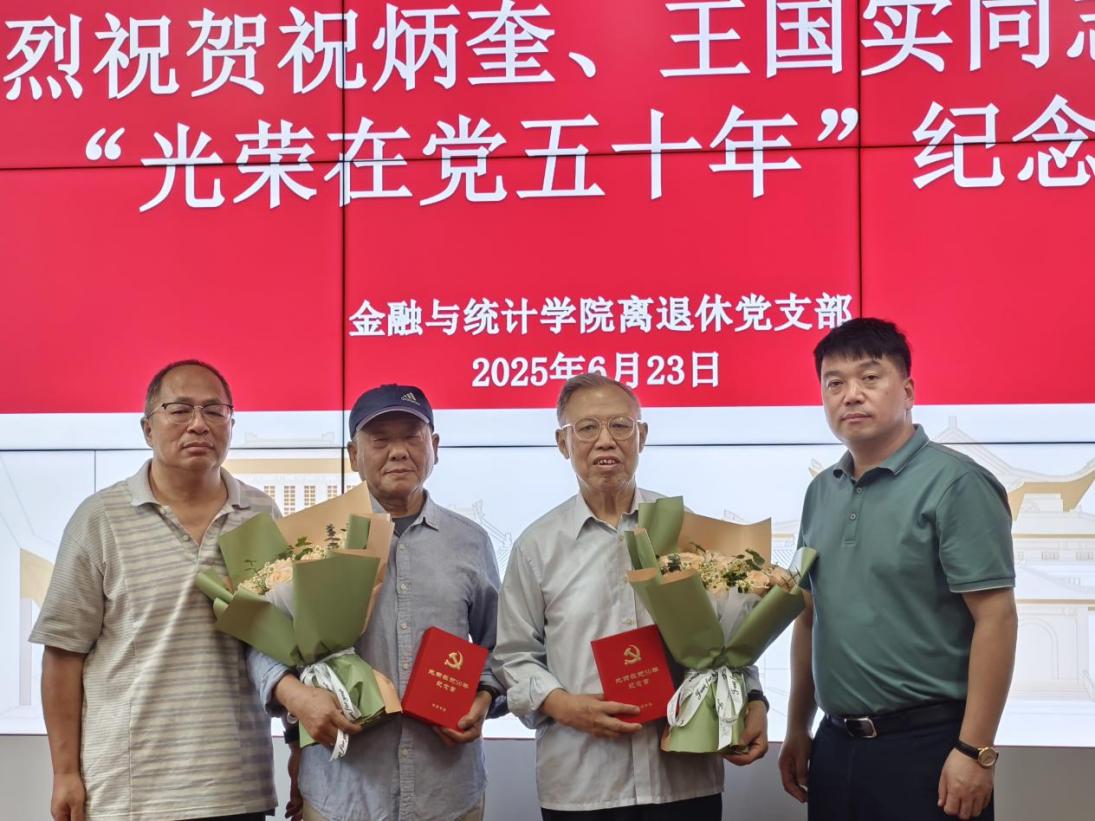 6月23日上午,童颜巨乳 隆重举行“光荣在党50年”纪念章授予仪式。童颜巨乳党委书记黄红立出席会议,离退休支部书记曹晓东主持会议,童颜巨乳部分师生党员代表共同见证这一庄严而温暖的时刻。